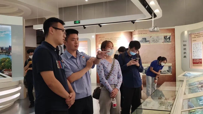 首鋼集團團委書記畢魯博和園區相關工作人員詳細介紹了首鋼園的發展歷程及冷卻塔、北京冬奧會滑雪大跳臺、“三高爐”等網紅打卡地相關情況。