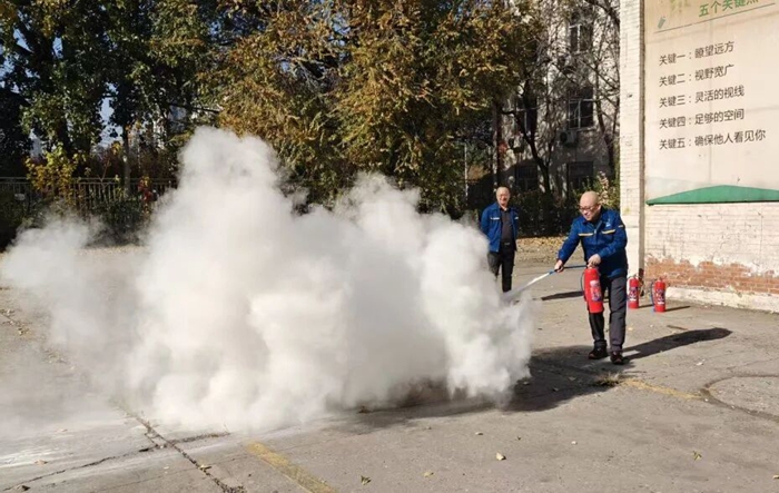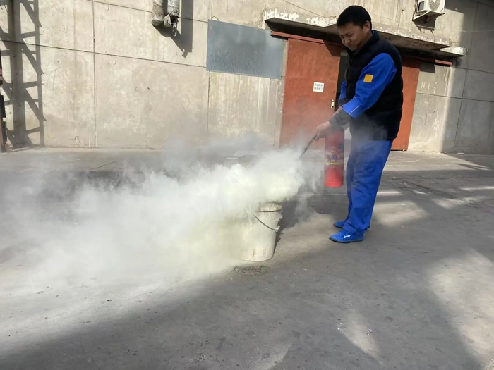 “提、拔、握、壓——對準火源根部掃射!”在演練現(xiàn)場,安全員手持滅火器,結合冬季干燥、火情易蔓延的特點,向員工講解操作要領,強調(diào)冬季滅火器維護重點。