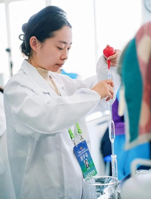 經(jīng)過激烈角逐,竇子璇在集團(tuán)競賽中獲得第一名,拿到全國總決賽“入場券”。在決賽環(huán)節(jié),面對高強(qiáng)度考核,竇子璇心態(tài)沉穩(wěn),處理樣品時,她手持移液管姿勢標(biāo)準(zhǔn),精準(zhǔn)移取;儀器操作中,她熟練調(diào)試參數(shù),動作流暢;數(shù)據(jù)分析階段,她嚴(yán)謹(jǐn)推導(dǎo),不放過細(xì)微誤差。