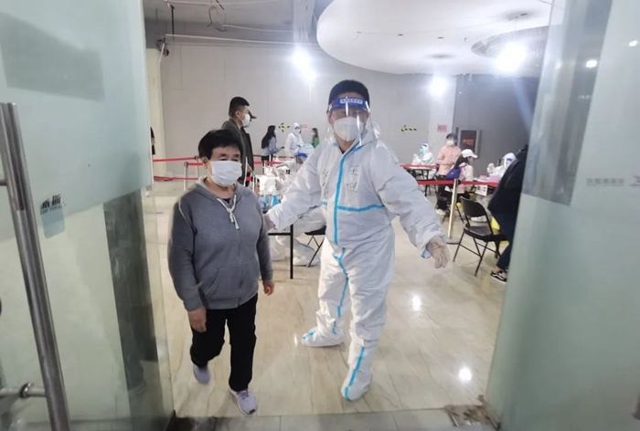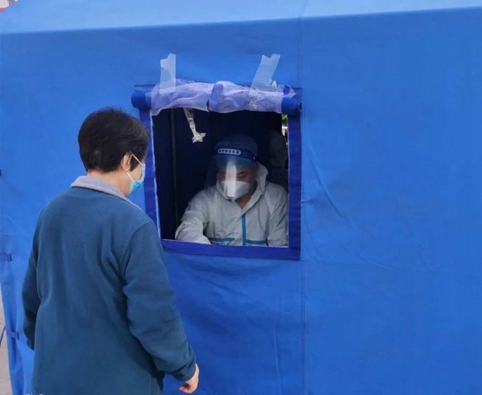 共產黨員李旭偉參加大興區舊宮鎮清欣園社區核酸檢測志愿服務。