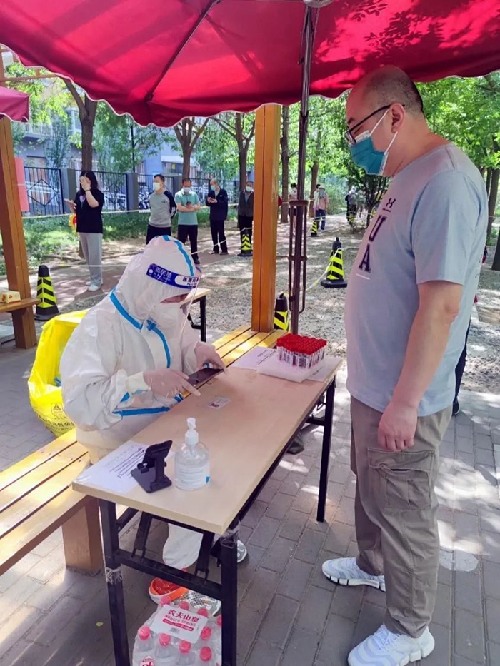社區是疫情聯防聯控的第一線,也是外防輸入、內防擴散的主戰場。在北京化工集團和技師學院發出干部下沉社區的號召后,我第一時間報名,積極參與到社區疫情防控工作中。作為一名入黨積極分子,哪里有危險,哪里有需要,哪里就應該有我們的身影。在本次高風險、封控區的十八里店鄉呂家營村,組織居民核酸檢測、協調防疫物資等就成了我每天忙碌的核心。