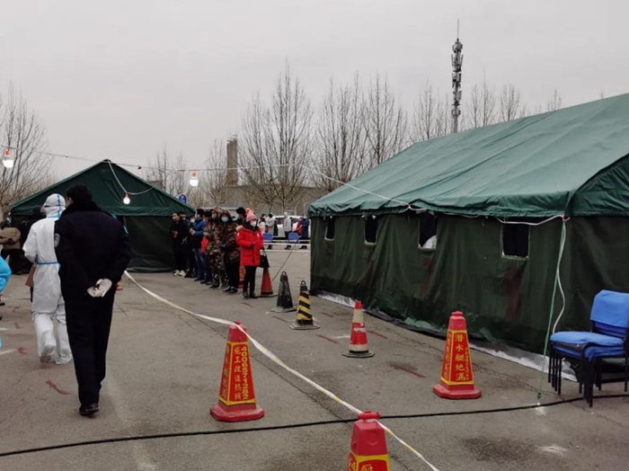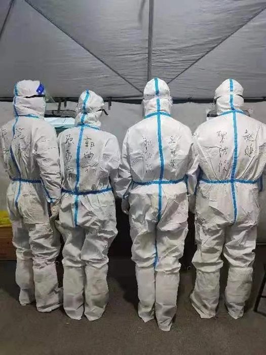 采樣期間,因人員較多,采樣工作都在室外進行。工作在最低溫度達到零下10度左右的環境里,42名應急隊員穿戴全副武裝的防護服,不僅要直面寒冷天氣的侵襲,還要克服醫用防護服、醫用防護眼鏡、防護口罩等一層層防護用品所帶來的不便。