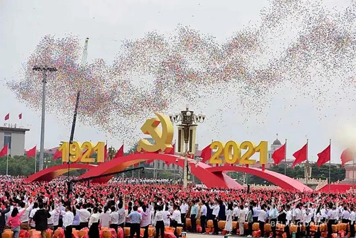 7月1日,慶祝中國共產(chǎn)黨成立100周年大會在北京天安門廣場隆重舉行。當人們?nèi)孕某迸炫取o比激動地沉浸在總書記重要講話中時,伴隨著天安門廣場7萬多人的歌聲、歡呼聲,10萬只氣球騰空而起,天安門廣場上空剎那間彩球飛舞、彩練當空,瞬間將慶祝中國共產(chǎn)黨成立100周年大會推向又一個高潮。
