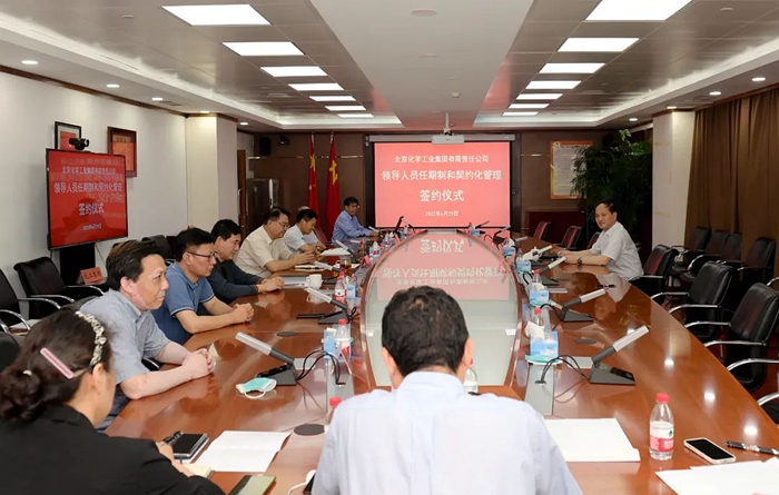 北京化工集團黨委書記、董事長王國華代表集團董事會與經理層成員簽訂《崗位聘任協議》、《年度業績考核責任書》、《任期業績考核責任書》。黨委副書記、總經理陳宇,黨委常委、副總經理孫紹剛,黨委常委、副總經理韓寶海,黨委委員、副總經理李效軍,黨委委員、總經理助理李泳等經理層領導先后簽約。