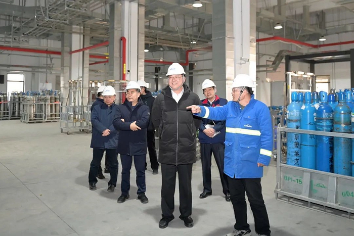 陳宇首先走進(jìn)北普工廠,深入生產(chǎn)一線了解氣體保供情況 。陳宇詳細(xì)查看了北普工廠灌裝生產(chǎn)線運(yùn)行情況、氧氣瓶安全裝卸、運(yùn)輸和各類(lèi)氣瓶的存儲(chǔ)情況。詳細(xì)了解了節(jié)日期間首都各大醫(yī)院需求情況及保障措施。叮囑一線干部職工要始終把安全生產(chǎn)放在首位,堅(jiān)決扛起節(jié)日期間安全生產(chǎn)主體責(zé)任,同時(shí)要加強(qiáng)調(diào)度,為首都各大醫(yī)院提供及時(shí)便捷的保障服務(wù),確保首都市民度過(guò)一個(gè)安全健康的春節(jié)。