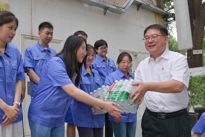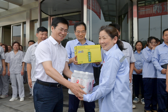 陳宇一行每到一處,都親手將防暑降溫物品送到一線職工手中,為他們“送清涼”,傳遞出集團黨委對堅守在高溫高濕一線勞動者的關心關愛。