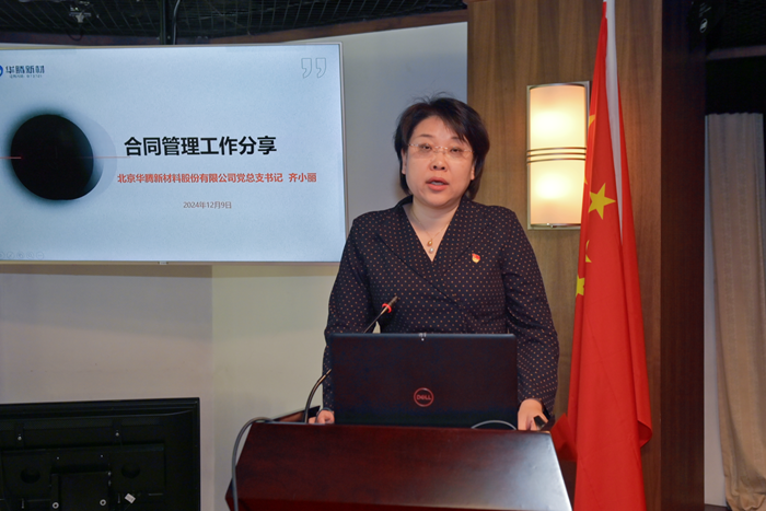 化研院黨總支書記助理李志勇圍繞制度體系建設和內控合規(guī)工作,華騰新材黨總支書記齊小麗圍繞合同管理分別作交流發(fā)言。