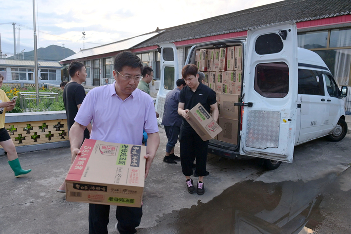 7月29日上午,集團黨委第一時間獲悉密云區太師屯鎮令公村受災情況后,馬上聯系駐村第一書記李東,當了解到通往村里部分路段沖毀嚴重,村民急需飲用水和食品后,北京化工集團黨委書記、董事長陳宇親自部署,對救援和慰問方案親自設計,有關集團領導、“兩辦”、財務,組織、黨群等部門緊急開展工作,選派得力人員購買物資,派出車輛,緊急調度,馳援一線。
