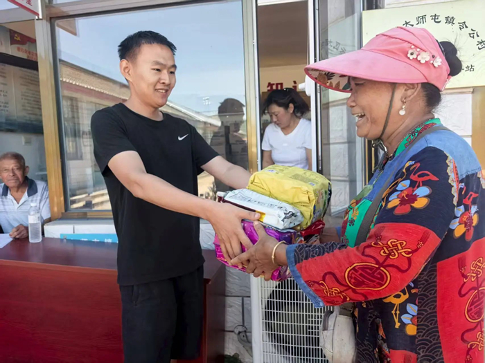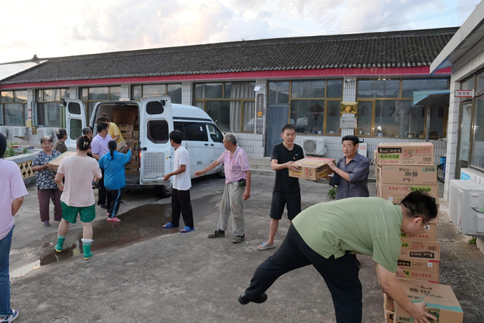 7月30日上午,李東又馬不停蹄地組織人員將北京化工集團馳援的物資分發到村民手中。