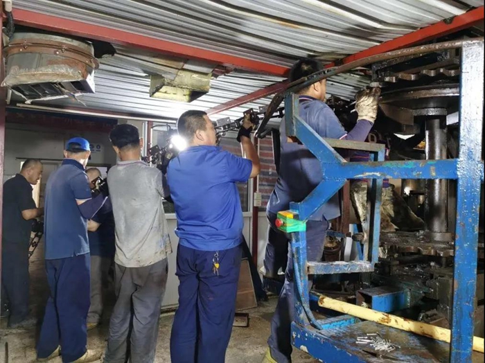 為保障生產線在夏季高溫時期正常運轉,維修人員克服暑熱,全力維保生產設備,同生產線職工共同堅守在一線,在高溫悶熱的環境中用肩膀扛起了一個又一個部件,即使汗水浸透衣衫,油污布滿雙手,依然堅守職責,確保生產穩定。