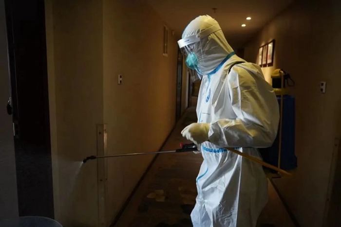 每天深夜,當(dāng)賓客們沉沉睡去,閉環(huán)服務(wù)人員還要進(jìn)行垃圾消毒清運(yùn)工作。眾所周知,垃圾是病毒最容易傳播的媒介,為防止疫情傳播,閉環(huán)人員要對(duì)一袋袋垃圾進(jìn)行全面消殺,然后再手動(dòng)一袋袋地將垃圾送至目標(biāo)場(chǎng)所,垃圾的異味常常令服務(wù)人員一陣陣作嘔,但大家沒(méi)有一句怨言。