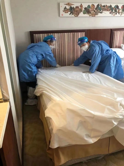而今,又一陣戰(zhàn)鼓擂響。在這春風(fēng)徐來(lái)的三月,華騰美居酒店征塵未洗又接到新的任務(wù),要承擔(dān)起屬地政府要求的醫(yī)學(xué)觀察點(diǎn)保障任務(wù)。看,我們的華騰美居人再次整肅妝容,精神抖擻地投入到疫情防控新的戰(zhàn)場(chǎng)之中……