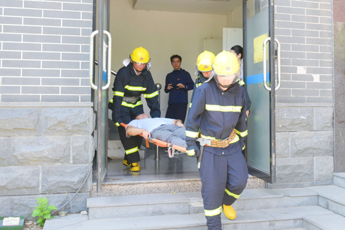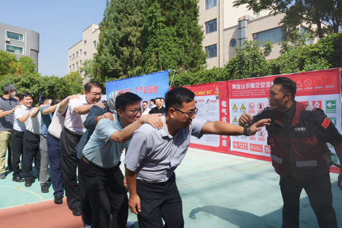 演練結束后,在大廈籃球場開啟了安全咨詢體驗活動,整個活動分為六個區域,分別為仿真火滅火體驗區、呼吸梗阻應急體驗區、心肺復蘇體驗區、逃生繩應急體驗、應急器材展示區及模擬火場環境逃生體驗。整體活動環節設計緊湊,高溫天氣也阻擋不了大家體驗的熱情,北化房地產公司工作人員維持現場秩序,同時為大家精心準備了防暑降溫飲料及藥品,確?;顒禹樌M行。