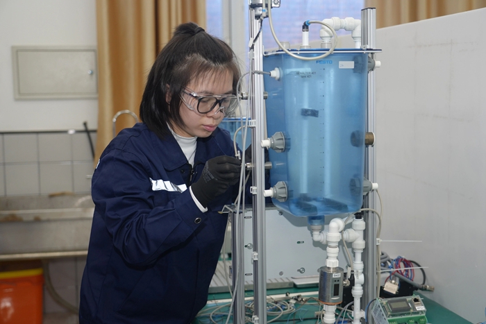 緊張而熱烈,嚴肅而激昂——技師學院世界技能大賽集訓基地內縈繞著技能逐夢、匠心筑夢的北化強音。